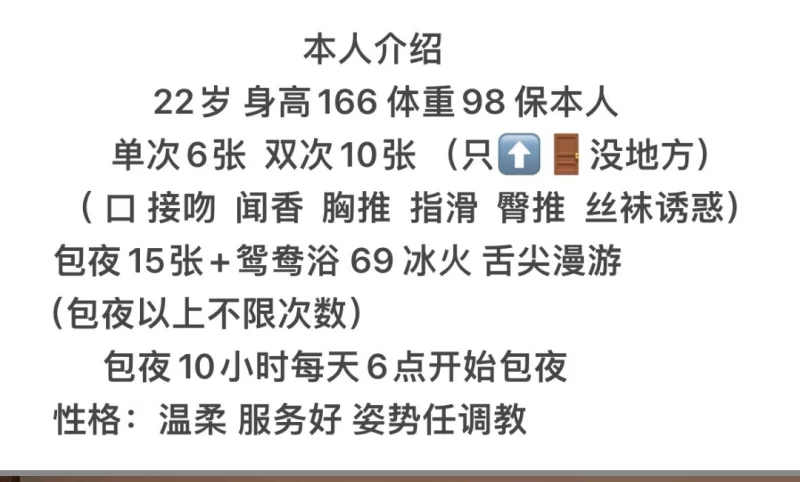 信息分类:楼凤兼职 地区:辽宁省-鞍山 信息来源:朋友推荐 年龄:22 颜值身材:98 服务项目:下面有详情,该会的都会,口活一绝 价格:500单p 1500包夜 环境设备:公寓楼,铁东区 详细地址:本段信息已隐藏,请先登陆。点击登陆 , 或者 点击注册 联系方式(QQ号):本段信息已隐藏,请先登陆。点击登陆 , 或者 点击注册 详细介绍: 朋友是个资深老狼,酒后推荐,莫名而来,人好活好干净,自己兼职 楼凤兼职